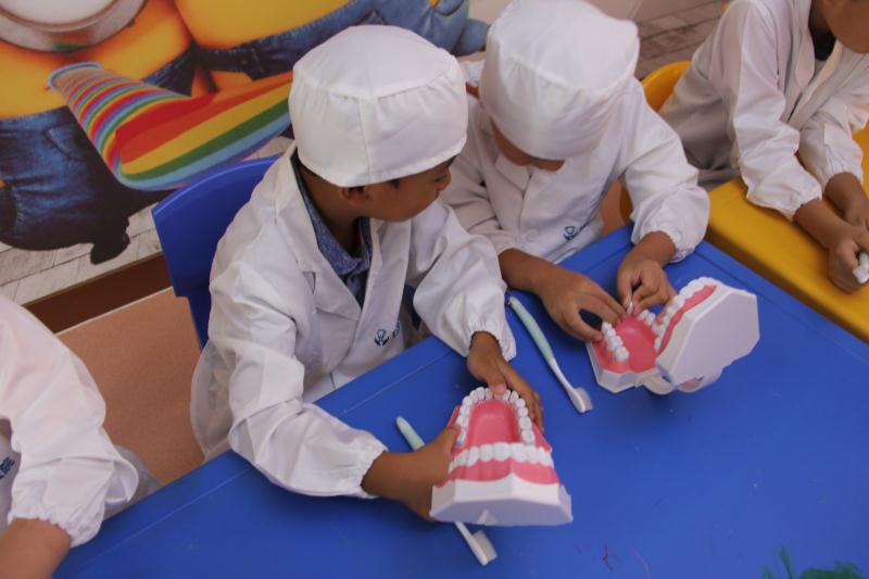 小小牙医认真练习刷牙,回家教给其他小朋友