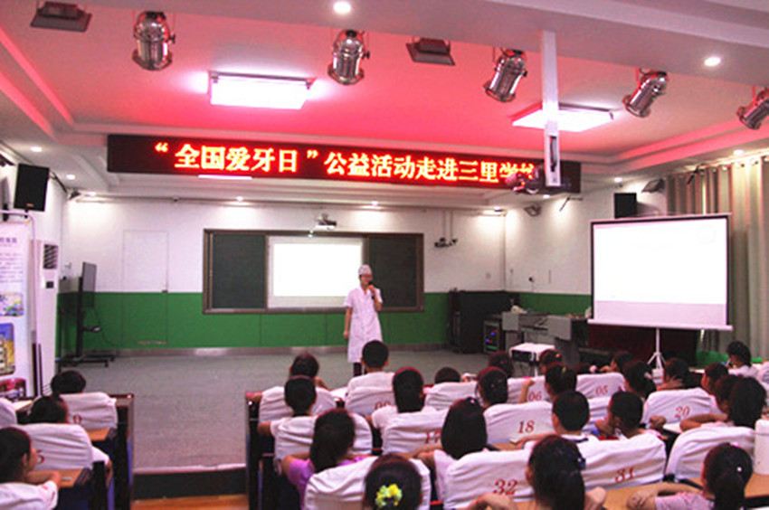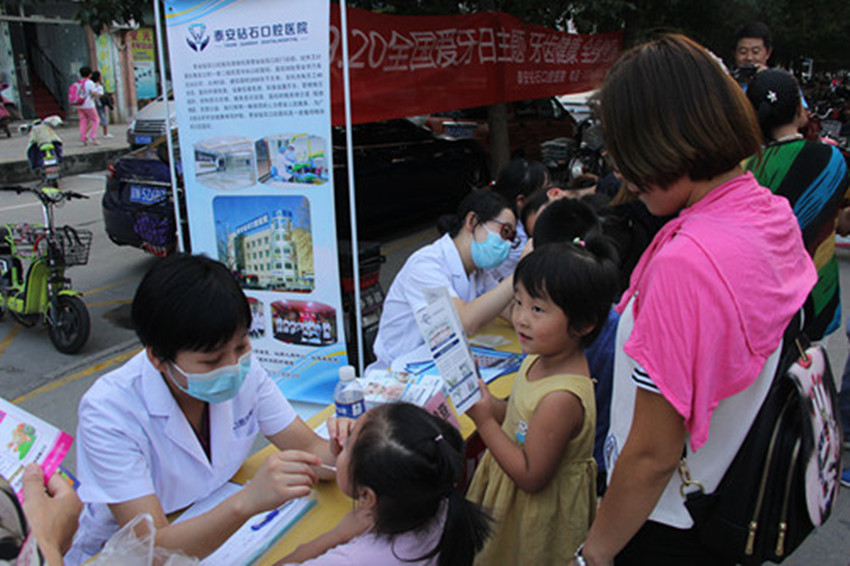 全国爱牙日活动期间,泰山口腔医院走进三里小学,在多媒体教室里钻石口腔医院的医生给同学们传授口腔保健知识,一一为同学检查口腔问题,教给同学们如何正确刷牙,放学后在校门口细心解答家长和同学们的各种口腔问题此次活动受到老师、家长、学生的一致好评!