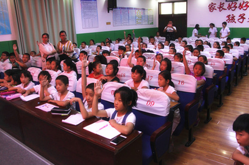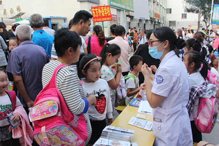 放学后,医生细心解答家长和同学们的口腔问题并且对口腔进行检查