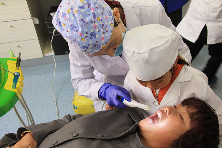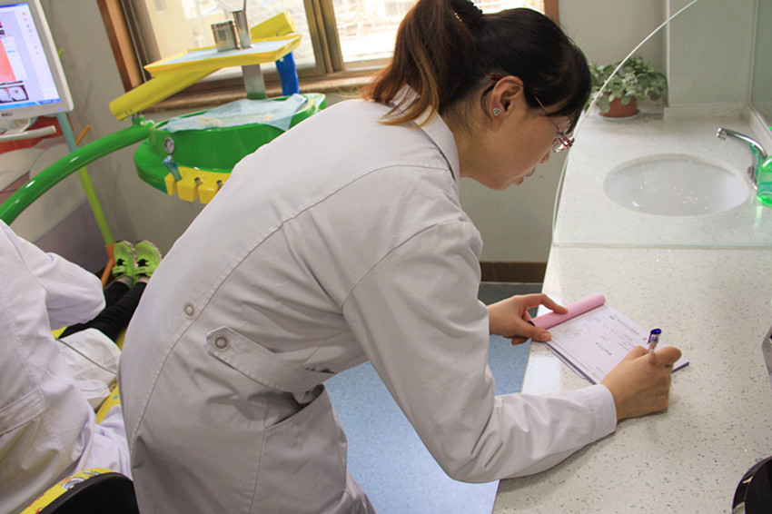 参观完成后,医生开始给小朋友检查口腔健康问题,利用内窥镜检查更方便,更容易查看牙齿健康问题,并且有医生记录检查结果,以便将检查报告单交给小朋友家长参考。