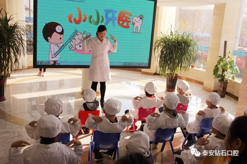11月12日上午,远航教育学校领导、家长和小朋友来到泰山口腔医院参加“小小牙医体验活动”,活动分为课堂活动和实战体验活动。