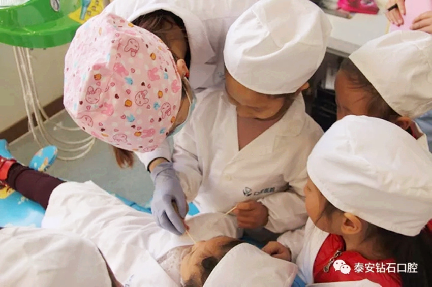 11月18日,泰安青山幼儿园小朋友及家长、老师来到泰山口腔医院参加”小小牙医体验营活动“。