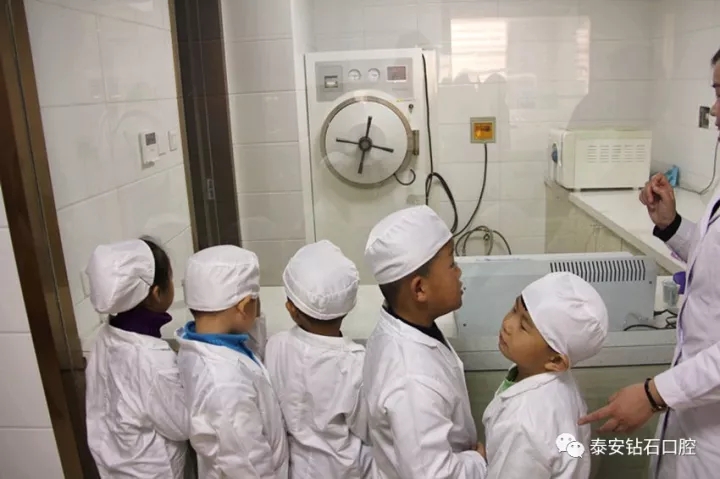 医生带小朋友参观医院消毒室,全景CT室,诊室仪器和设备,小朋友看到后都很兴奋激动,迫不及待地要当“小小牙医”。