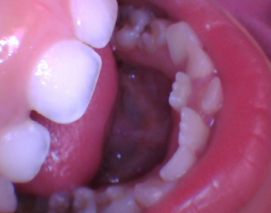 (1)常见下颌乳中切牙滞留,恒中切牙于舌侧萌出,呈现双排牙现象。继承恒牙已经萌出,滞留的乳牙应该拔除。