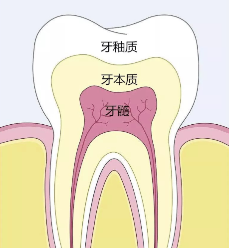 2、中症:牙釉质表面呈棕褐色,有带状或窝沟状凹陷,无自觉症状。