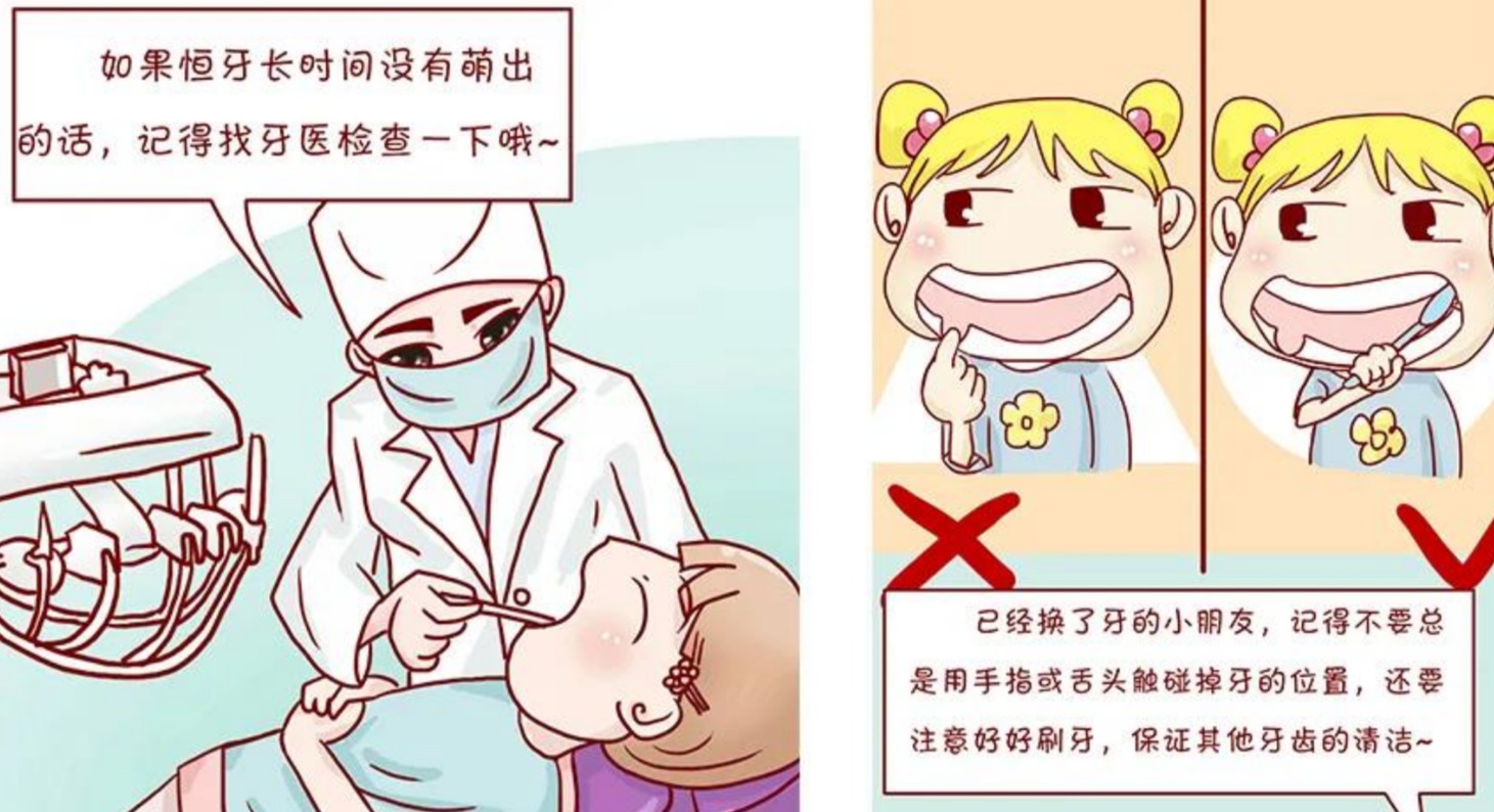 所以,建议在孩子5岁后,到口腔科拍个全景片,以观察恒牙胚的发育情况,换牙期间也需定期看牙医,以排除牙齿替换异常情况。日常饮食方面,应多吃耐咀嚼的食物,以促进颌骨发育和牙齿正常替换。