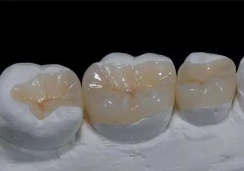 3、超瓷嵌体:颜色较金属嵌体逼真,接近于牙齿颜色,超硬树脂材料。抗折强度和耐磨性不如金属嵌体。