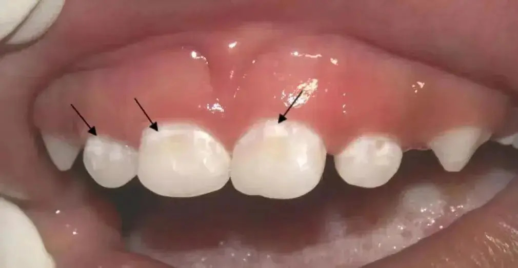 有不少家长提问:“医生,麻烦您帮忙看一下,孩子的牙齿表面怎么一块白一块黄,还凹凸不平的?”